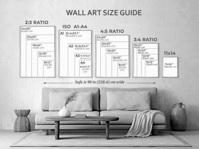 In-room mockups typically feature the largest available size and may include matting and framing for illustrative purposes only.