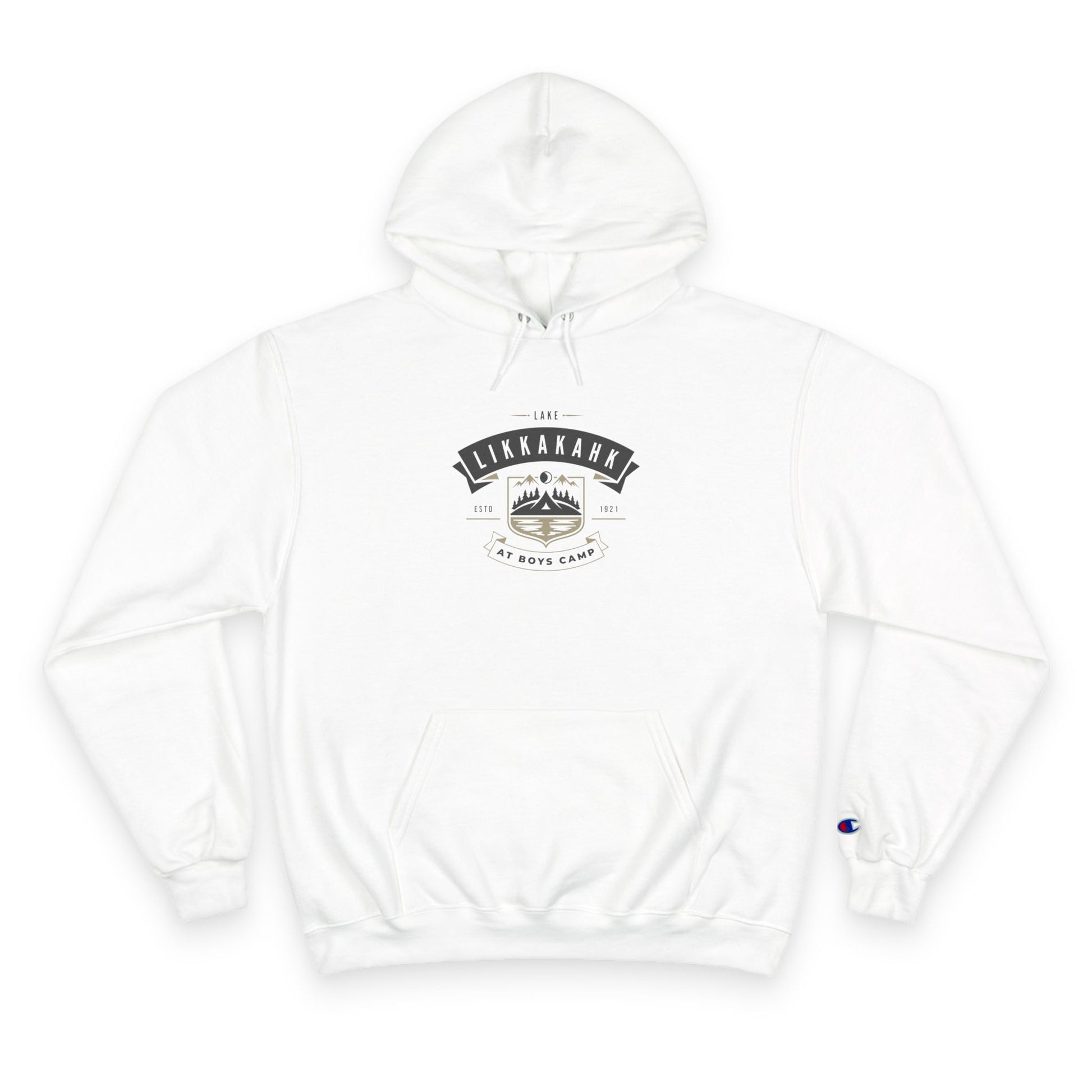 This hoodie feels like a quiet morning at camp: soft, warm, and simple. The Champion hoodie carries a small emblem graphic with "Lake Likkakahk“ lettering on the chest, with a tiny back print that reads like a private reminder. It slips on easily, hood cinched to block the wind, hands tucked into the roomy kangaroo pocket. The cloth has a substantial, medium-heavy weight that holds its shape and keeps you cozy on cool walks, around a fire, or while lingering over coffee. Clean lines, the subtle Champion “C” on the sleeve, and responsible fabric choices (partly recycled) make it a piece you’ll reach for when you want comfort with a calm, outdoorsy look.
